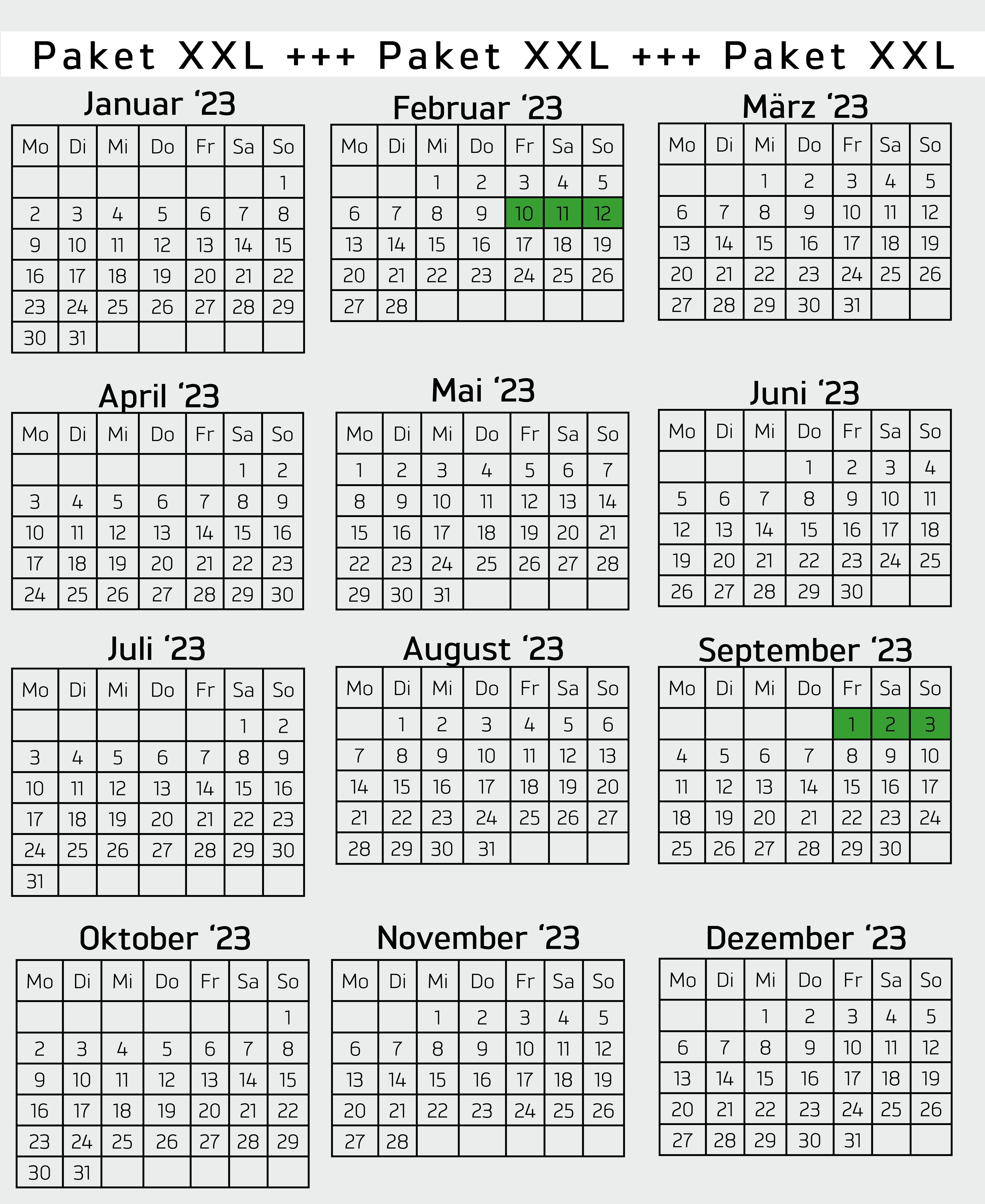 Nachfolgend finden Sie vorkonfigurierte Pakete für Veranstaltungen, Informationen zu deren Verfügbarkeit (per Kalenderfunktion) sowie zusätzlich buchbare Materialien. Bitte wählen Sie zunächst die gewünschten Pakete, zusätzliche Materialien und Services aus, die Sie für Ihre Veranstaltung benötigen. Der Gesamtpreis ergibt sich aus den gebuchten Paketen, den zusätzlich benötigten Einzelteilen (abhängig von benötigten Europaletten und der Entfernung) sowie den angefragten Services. Nach Ihrer Anfrage wird Sie ein Mitarbeiter des Veranstaltungsservices kontaktieren und den finalen Preis für Ihre Anfrage nennen.