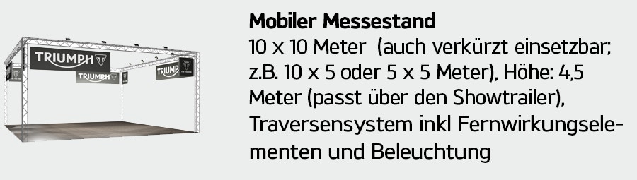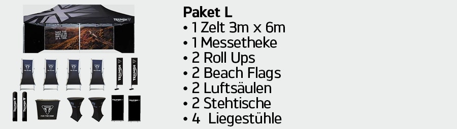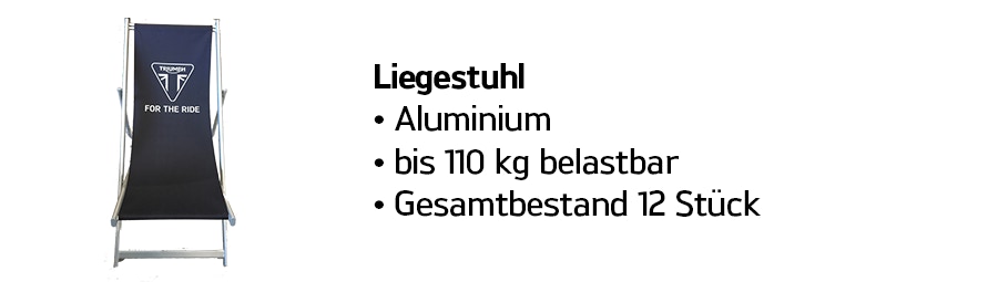Herzlich Willkommen beim online Buchungstool der Triumph Motorrad Deutschland GmbH. Hier können Sie Veranstaltungsequipment konfigurieren und anfragen.